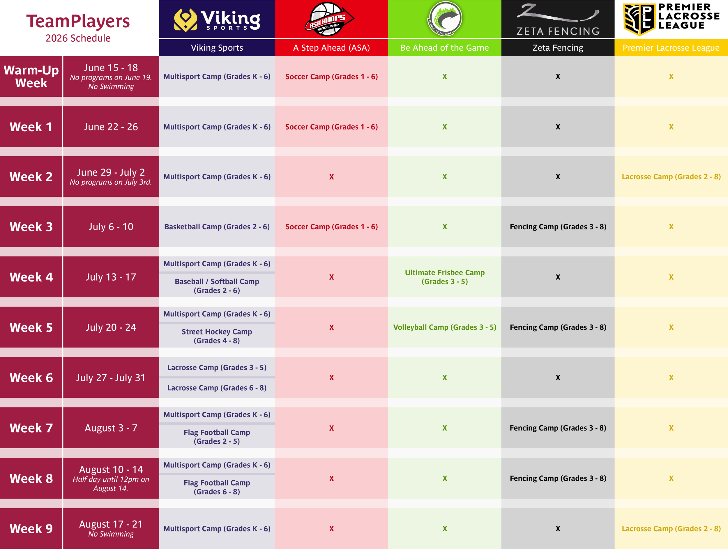 The TeamPlayers program offers a dynamic sports camp experience with the added benefit of Branches’ state-of-the-art facilities and supportive, experienced coaches. Athletes build skills through drills, scrimmages, and engaging instruction while exploring a variety of sports. Along the way, they strengthen teamwork, grow their confidence, stay active outdoors, and experience the excitement of being part of a team - all while having fun.